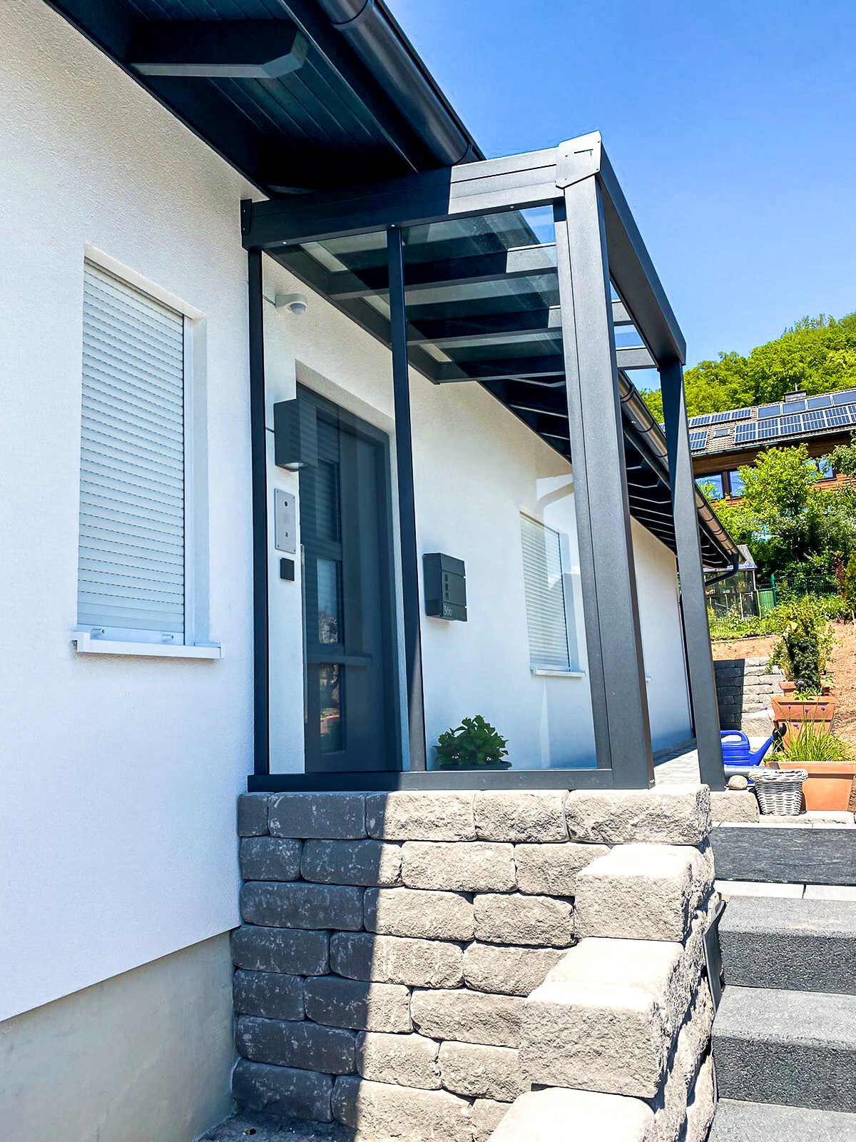 Ein Vordach schützt Ihren Eingangsbereich zuverlässig vor Regen, Schnee und direkter Sonneneinstrahlung. Gleichzeitig wertet es den Hauseingang optisch auf und sorgt für einen einladenden, modernen ersten Eindruck.